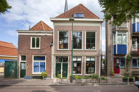 begane grond: grote open ruimte met hoge ramen. Hier is ruim gelegenheid een woonkamer, keuken en slaapvertrek te realiseren. De hoge ramen zorgen voor een goede lichtinval.